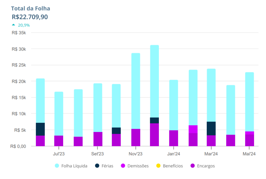 Na nossa gestão de colaboradores analisamos possibilidades de remunerações estratégicas visando melhorar o engajamento e entrega de resultados da equipe, redução da carga tributária sobre remuneração, além de nos responsabilizarmos pelo cálculo da folha de salários, 13ª, rescisões e controle de férias.